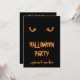 Gato negro vê convites para festas de Dia das Bruxas preto e laranja.