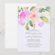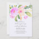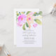 Convite de festa de noivado floral com um tema de flores roxas pintadas à mão. As flores principais também estão cercadas por flores menores e folhas pintadas. Se você planeja sua festa de noivado com lindos arranjos florais roxos então este convite para flores aquáticas representará perfeitamente seu dia especial. Perfeito para qualquer festa de noivado de estilo - rústico, moderno ou vintage.