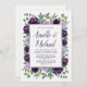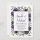 Convites à Festa de noivado Floral de Prata Roxa - apresentam flores a aquarela em tons de púrpura (ameixa, berinjela, lavanda, etc.) com vegetação que consiste em eucalipto e outros ramificadores bonito.