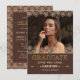 Design de cartão único com um fundo de burlap com bordas de rendas para criar espaço para sua foto; tipografia de CELEBRAÇÃO DE GRADUAÇÃO com brilho dourado, setas douradas com brilho de corações e um fundo de burlap com rendas de marfim no verso. Seja diferente e surpreenda seus convidados com este convite exclusivo. Use a ferramenta Personalizar para adicionar suas informações. Substitua esta foto pela sua, logo atrás da toca.