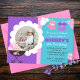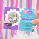 Bebê Doll Aniversário 1 Convites de festas Fotográficos. Uma festa perfeita para o amante das bonecas. É fácil personalizar. Escolha a sua imagem favorita da criança de aniversário e adicione as informações da sua festa. Encomendar com envelopes em uma variedade de opções de papel ou optar por um download digital de alta resolução para enviar itens ou impressão de casa. Parte da nossa coleção de anos de bonecas bebê apresentando tons de roxo, rosa e azul-lacre Caribe.