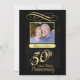 Convites de fotos da festa do Elegante 50º Aniversário de Casamento — acentos de ouro de vintage em fundo preto com uma adorável escrita em ouro. Personalize com sua foto, seus nomes, data e detalhes para uma celebração exclusiva de ouro. Correspondência de correio e cartões de agradecimento disponíveis.