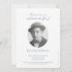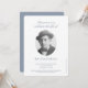 Anuncie a passagem do seu amado e os detalhes da celebração do seu serviço de memorial de vida com esta pomba branca voadora pacífica em cinzas com o serviço de memorial de fitas azuis no anúncio de convite para fotos. Personalize com seu local, foto e nome de seu amado e detalhes de rsvp. Arte original e design por Sarah Trett para www.mylittleeden.com