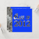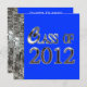 festa de formatura, convites ou anúncios da "Classe 2012" do Excelente com uma borda de brilho prateado. "Classe de 2012" de prata para um gráfico de aparência em 3d metálico sobre fundo azul real. Adicione facilmente seu texto personalizado à parte traseira da placa, que tem o mesmo plano de fundo que a parte frontal da placa. Um grande boné preto de graduação com um gráfico de tassel de ouro também é adicionado ao design traseiro. Mude facilmente a cor azul na parte frontal e traseira. Basta clicar em "Personalizar" e em "editar" e, em seguida, em "fundo" para obter a cor de sua escolha. Lembre-se da ocasião especial com estes convites de formatura personalizados.