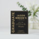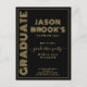 Convites de graduação em preto e ouro com tipografia de ouro exclusiva, quadro de ouro e tipo de script. Adequado para a faculdade ou formando segundo grau.