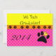 Vet Tech Graduation Convites, bolinhas cor-de-rosa e laranja com emblema de pata de cão. Cheio personalizável na frente e atrás. Perfeito para a graduação de técnico veterinário.