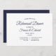 Marinho azul e branco, janto de ensaio de casamento. Branco com script azul de marinho e texto de bloco. A parte de trás é azul marinho sólido.