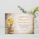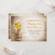 lindos antecedentes de madeiras rústicas e jarro de mason com flores amarelas e brancas ensaiando convites para janto. Eu sugiro um trabalho de Linen para esta design.