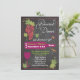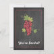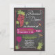 Janto legal e moderno de ensaio de casamentos de vinhos de quadro-negro Convites para apresentação de excelentes com a ilustração das uvas vermelhas, do parafuso de cortiça, da garrafa de vinho, do vidro de vinho e das folhas de uva, todos em fundo de quadro-chanfrado. Fácil de editar com as informações da sua festa! Ilustração desenhada à mão por McBooboo.