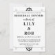 Marque um janto de ensaio memorável com nossos convites de janto de ensaio náutico! Estes convites encantadores apresentam um marinho clássico de fundo acentuado com uma fronteira russa da corda. O texto é impresso em um esquema de cor branca e marinho nítido, criando uma elegância de eterno que complementa perfeitamente a celebração costeira. Estes convites são perfeitos para dar o tom para uma noite divertida e festiva com a sua família e amigos mais próximos.