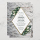 O Janto de ensaio da Floresta de Birch apresenta um fundo de latido de árvore de pássaros rústicos com elementos florais de flores de solteiro lírio, hálito de bebê, folhas e muito mais. A caixa de texto é um triângulo elegante com uma imagem falsa de ouro impresso em folha.