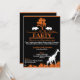 Convites pretos e laranja com silhuetas brancas e laranja de vida selvagem africana e folhagens. Personalize suas informações como quiser para o seu evento, usando o botão personalizar acima. Todos os meus desenhos são © Novastorm Designs