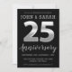 Comemore seu 25 de aniversário com estilo com estes elegantes e simples convites prateados. Perfeito para uma cerimônia de renovação de temas modernos ou de votos, estes convites apresentam um design elegante com um toque de brilho prateado.