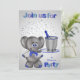 Convide seus convidados para uma festa de divórcio para qualquer um em geral com um cartão com um elefante bonito vestindo óculos oculares decolados em uma jaqueta bonita com um carregando de arco em uma bandeja com seu porta-malas. A bandeja tem uma garrafa de champanhe sendo resfriada em um balde de gelo rico contra um fundo gradiente com estrelas de prata e texto. Design por Laurie Schneider/Elements por La galerie de Jackie/Diana'z Creationz