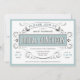 Convites de noiva com um design vitoriano branco e azul pálido.