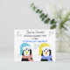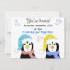 Um convite de férias divertido com pinguins deliciosos caídos em chapéus e lenços. Flocos de neve suaves e azuis acendem isso. Personalize com todas as suas informações conforme desejado. Um convite para festas divertidas.