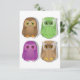 Um design bonitinho de quatro corujas. As corujas são todas de cores diferentes e estão em filas de duas. Este design de quatro corujas parece excelente neste Convites