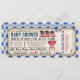 Convites de tíquete de Chá de fraldas de CHURRASCO - estilo rústico com Tíquete Raffle de Fralda anexado. Fácil de personalizar, divertido e inclusivo para convidados. Fronteira azul de gingham e apoio. Divirta-se!