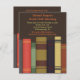 Um convite para uma reunião do clube de livros com uma design de uma coleção de livros numa estante de livros. Excelente para todas as sessões do clube de leitura e livro.
