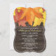 O estilo colchete vertical cortou os convites da Reunião Familiar do Sul, com tema do país, desenhados com Folhas de outono coloridas sobre uma ilustração de textura marrom rústica da madeira.