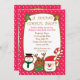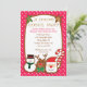 Cookies alguém? Nada diz mais sobre feriados do que uma boa troca de biscoitos antiquada! Convide sua família e amigos para comprar alguns produtos cozidos com este adorável convite para troca de cookies. Está colocado num fundo vermelho de bolinhas branca. Há uma borda marrom com dois cookies estrelados nos cantos superiores. Na parte inferior estão cookies mais coloridos: uma bengala, um boneco de neve, uma rena, papais noeis enfrentam um biscoito. Use o verso deste convite bonito para explicar como uma troca de cookies funciona. Veja os muitos outros designs que temos.