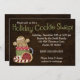 Convites para troca de cookies de férias. Apresentando um doce biscoito de gengibre em uma caneca de café em um fundo marrom. Um design branco para a sua festa de troca de bolachas de Natal! Gráficos © Scrappin Doodles em www.scrappindoodles.com