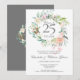 Com uma delicada grinalda floral em aquarela, este convite de aniversário de casamento de 25 anos botânico e elegante pode ser personalizado com as suas informações especiais de aniversário. O verso apresenta uma grinalda floral correspondente que enquadra as datas do seu aniversário em texto elegante sobre um fundo prateado. Concebido por Thisisnotme©