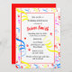 Este convite de aniversário festivo apresenta um fundo e uma cobertura coloridos de fita girada vermelha, azul e amarela. Use este convite para ela, adolescente adulto ou criança. Personalize o texto com as informações do seu partido Gráficos por pixabay