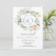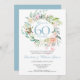 Um convite de aniversário de casamento de 60 anos botânico chique que pode ser personalizado com os detalhes do seu aniversário especial. O verso apresenta uma grinalda floral correspondente emoldurando as datas do seu aniversário em texto elegante em um fundo azul diamante. Criado por Thisisnotme©