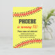 Convite Simples Para Aniversário De Softball | Envie estes simples convites de aniversário para suas amigas para comemorar seu aniversário de todas as estrelas! Este convite para o softball amarelo e vermelho é facilmente personalizável e inclui uma faixa preta e amarela para trás! Quer mais? Basta clicar no nome do link azul do nosso compro (TKM Party Printables) acima do botão personalizar para ir à nossa loja!