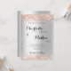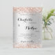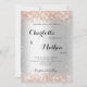 Um convite formal para o casamento com um fundo falso de prata. Decorado com faíscas rosa douradas. Personalize e adicione seus nomes e detalhes da festa.