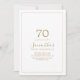Este convite minimalista de 70 de aniversário de ouro é perfeito para uma simples festa de aniversário. A design romântica moderna apresenta ouro clássico e tipografia branca emparelhada com uma caligrafia rústica, mas elegante, com estilo voltado para a mão. Personalizável em qualquer cor. Mantenha o design simples e elegante, como está, ou personalize-o adicionando seus próprios gráficos e trabalhos de arte.