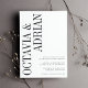 Um convite de casamento moderno e mínimo baseado em tipografia, com seus nomes em caracteres clássicos de serif negra suave, rodando verticalmente para o lado esquerdo do cartão. Personalize com seus detalhes de casamento alinhados no canto inferior direito.