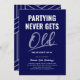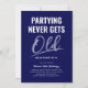 Faça sua festa de aniversário adulta inesquecível com nossos convites humorísticos e na moda! Apresentando um fundo azul na moda, a linha espirituosa 'festas nunca envelhecem' e um modelo de texto moderno que permite inserir seu próprio nome e idade, nossos divertidos convites de aniversário para adultos são um destaque. Perfeito para qualquer comemoração etária, estas cartas provam que riso é realmente o melhor remédio.