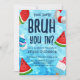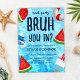 Com sua vibrante design e vibrante vibração, este Convite de Aniversário do Bruh Piscina Party Boy fará com que seus amigos contem os dias até sua festa de aniversário. Apresentando um divertido "Bruh, você está?" dizendo e um tema de água vibrante e natação, é o último convite para uma festa ao lado da piscina que todas as crianças vão amar. Perfeito por comemorar o aniversário do seu filho da forma mais legal possível, esta festa de piscina de na moda promete um bom momento cheio de jogos de água e risos intermináveis. Peça agora e prepare-se para encharcar as vibrações do verão!