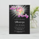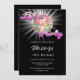 Um convite de festas feminino do 18º (ou qualquer idade). Uma cor preta de fundo. Decorado com uma bola colorida de discoteca. Texto: Partido do Vamos! Personalize e adicione um nome e detalhes da parte. O nome é escrito com um script de estilo manuscrito.
