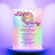 Um convite de festas feminino do 18º (ou qualquer idade). Um fundo holográfico, cor-de-rosa, roxo e verde-menta. Decorado com uma bola colorida de disco e um confete rosa. Texto: Partido do Vamos. Personalize e adicione um nome e detalhes da parte. O nome é escrito com um script de estilo manuscrito.