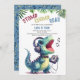 Um convite de festas de aniversário divertido e fofo para meninos com um tema de dinossauro, apresentando uma ilustração aquarela de um dinossauro fofo com um headset e um tocador de música, em uma pose de canto. Celebre o seu pequeno e selvagem convite com este estômago, compulsão e rugido que irá dar o tom para um tempo realmente selvagem na selva pré-histórica.