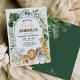 Este belo convite de aniversário apresenta um design espantoso que captura perfeitamente a essência de um tema da selva safari. Com uma série de animais selvagens como leões, elefantes e girafas, o convite também inclui folhas tropicais exuberantes que certamente transportam seus convidados para um mundo de aventura e diversão. O moderno boho acrescenta uma sensação chica e contemporânea, fazer-a a escolha perfeita para um na moda e festa de aniversário sofisticada.
