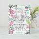 Convite de Aniversário para Animais de Festas. Um design divertido e moderno com um leão, girafa, preguiça, tucano, jacaré, tigre, elefante, tigre, tinha hipopótamo. Verifique se há itens correspondentes na coleção ou envie uma mensagem para qualquer solicitação especial.