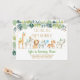 Este convite de aniversário fofo apresenta os animais cártaros com cor d'água com sotaques de folhas tropicais e falsos confetti de folha de ouro.