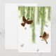 Pardais marrons e borboletas voam em uma chuva de folhas sob uma árvore de salgueiro chorão. Essa cena natural idílica é o cenário perfeito para suas mensagens pessoais, anúncios e convites.