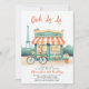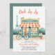 Junte-se à nossa aventura parisiense por uma festa do Sweet 16! Nosso convite mostra uma pintura fofa da Torre Eiffel espreitando por trás de um bar parisiense. É a escolha ideal para um adolescente que adora elegância francesa, moda, e o prazer de Paris. Esquema de cor rosa e verde de menta.