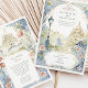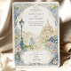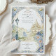 Convide seus convidados em eterno elegância parisiense com este convite romântico para casamento de cor d'água, inspirado pelo charme de Montmartre. A frente apresenta uma cena pintada à mão da icônica Basílica Sacré-Coeur, moldada por ornamentados girando flores em azul suave, azul empoeirado, verde-sábio e sotaques dourados. A luz de rua ao estilo vintage e a escada que percorre o sentido somam-se à configuração atmosférica e histórica. As fontes elegantes de serifa e de script reforçam o talento europeu clássico do convite. O reverso correspondente proporciona um espaço perfeitamente coordenado para detalhes extras, enquadrado com florescimentos botânicos complementares e uma segunda visão da basílica. Ideal para casamentos de destino ou casais que adoram arte e arquitetura francesas, este design oferece romance do mundo antigo com charme emparelhado.
