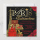 Convite de Quinceanera Parisiense com uma bela Torre Eiffel dourada, embalagens de presente elegantes de Paris, sapatos de salto alto dourados brilhantes, tiara de diamante e dourada cintilante e elegante escrita em Paris dourada em um rico fundo de rosas pretas e vermelhas. Este convite de Quinceanera Parisiense é facilmente personalizado para o seu evento, basta adicionar seus detalhes no estilo de letra e cor, e na redação de sua escolha. Este é um design impresso sem diamantes, jóias, brilho, etc. reais.