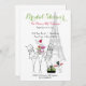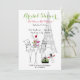 Paris Themed convites de festas, convida a apresentar um cachorro-maconha, a Torre Eiffel, uma mesa e dois assentos com flores no topo e uma bolsa verde-pequena. personalize com seu próprio texto - Convites de chá de panela de créditos de artistas Ricaso: JRett.com