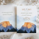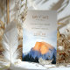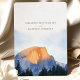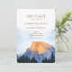 Capturar a maravilhosa beleza de Yosemite com este convite "Salve a Data", com uma representação aquática da famosa Half Dome banhada à luz quente do ouro. Perfeito para um casamento rústico ou ao ar livre, esta design mostra o esplendor natural do Parque Nacional Yosemite com tons terríveis de laranja, azul e verde. A elegante tipografia e paisagem serena fazem dela uma escolha ideal para casais que amam a natureza e a aventura. Convide seus convidados para uma celebração memorável cercada pela paisagem impressionante de Yosemite.