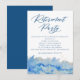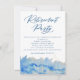 Convide seus convidados para uma celebração de aposentadoria com esta placa plana personalizável. Este elegante e gracioso design é pintado manualmente com aquarela em tons de azul claro, azul clássico e azul marinho complementado por dicas de ouro (folha simulada). O abstrato, design limpo é perfeito para um homem ou mulher que está pronto para celebrar o próximo capítulo da vida. O texto está em azul clássico e pode ser personalizado para sua celebração.