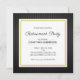 Este convite de festas de aposentadoria apresenta um tema de negócios clássico com um fundo preto e faixas verticais de cinza clara. Uma caixa branca com borda dourada contém texto personalizado para que você adicione seus detalhes de convite.