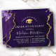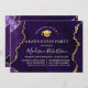 Convite para Festa de formatura de Geodo de Águas Elegante Moderno, Púrpura e Dourada de Marble Agate. Script de caligrafia de tendências. Boné de Formando Dourado.